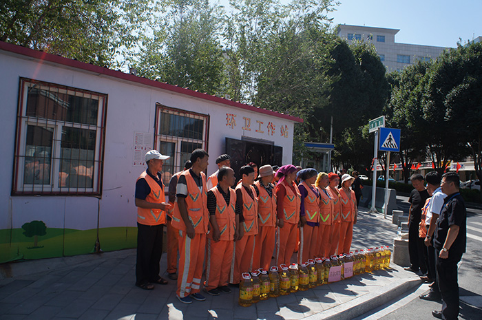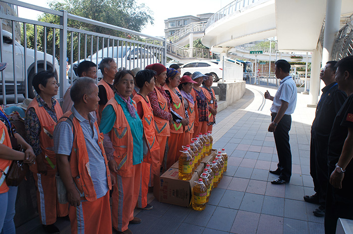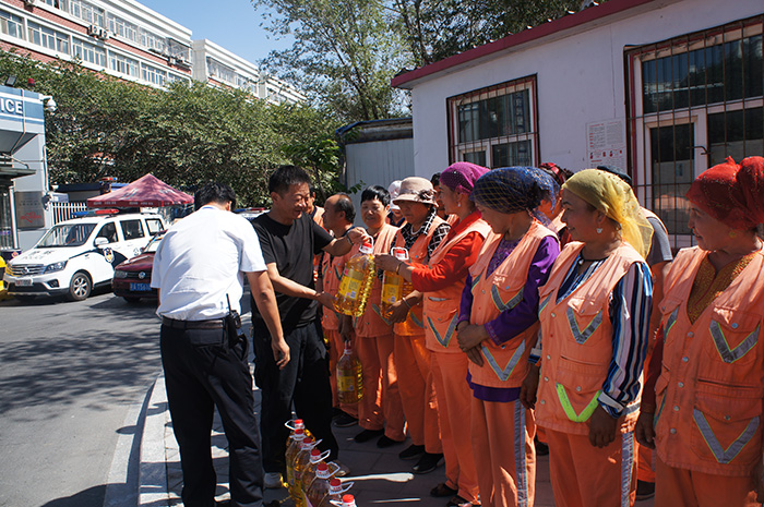 2018年8月21日全疆各族群眾歡度古爾邦節(jié)之際,新紀(jì)元環(huán)衛(wèi)黨支部、工會(huì)分別組織慰問小組對(duì)一線環(huán)衛(wèi)工人開展節(jié)日慰問活動(dòng)。
